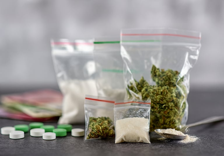 Defensa en delitos relacionados con drogas: tenencia, tráfico, cultivo o consumo, con enfoque en garantías y derechos.